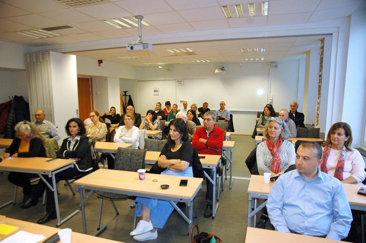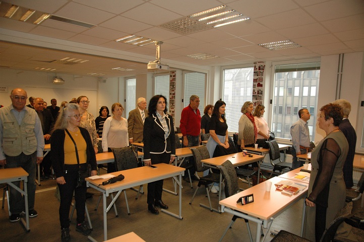 İsveç Atatürkçü Düşünce Derneği Başkanı Mustafa Sönmez’in kısa açış konuşmasından sonra Konferans saygı duruşu ve Ulusal Marşımızın hep bir ağızdan okunmasıyla başladı. Konuşmacılara söz verildi.
