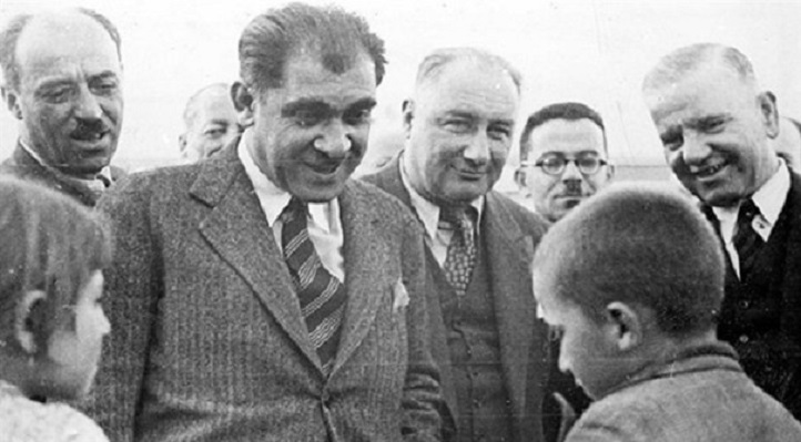 Milli Eğitim Bakanı Hasan Âli Yücel enstitülü bir çocukla konuşuyor.