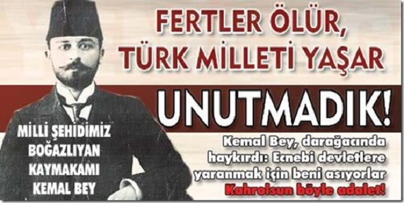 Boğazlıyan Kaymakamı Mehmet Kemal Bey’in cenazesini tıbbıyeli öğrenciler taşıdı... Çocuklarımı asil Türk milletine emanet ediyorum... 25 2883 1 Ermeni Patrikhanesi’nin iftiraları, Nemrut Mustafa’nın hükmü, Mustafa Sabri’nin fetvası, Vahidettin’in onayı ile İngiliz-Fransız askerleri ve Damat Ferit Hükümeti nezaretinde idam edilen Kaymakam Kemal Bey’in milli duruşu, günümüzde de “suç” sayılmak isteniyor.